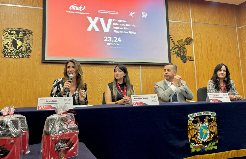 Ciudad de México, 23 de octubre de 2025. – En el marco del Congreso de Investigación de la Fundación de Investigación del Instituto Mexicano de Ejecutivos de Finanzas (IMEF), celebrado en la Facultad de Contaduría y Administración de la UNAM, la Presidenta Ejecutiva de la Unión de Instituciones Financieras Mexicanas (UNIFIMEX), Mtra. Soraya Pérez Munguía, participó como panelista en un diálogo especializado sobre los retos y oportunidades de la inclusión financiera en México.